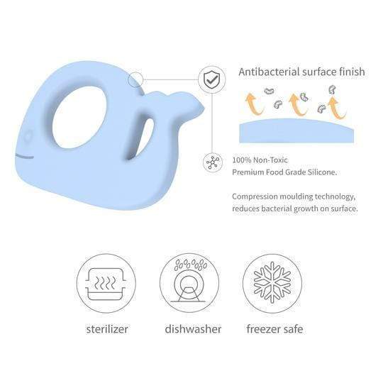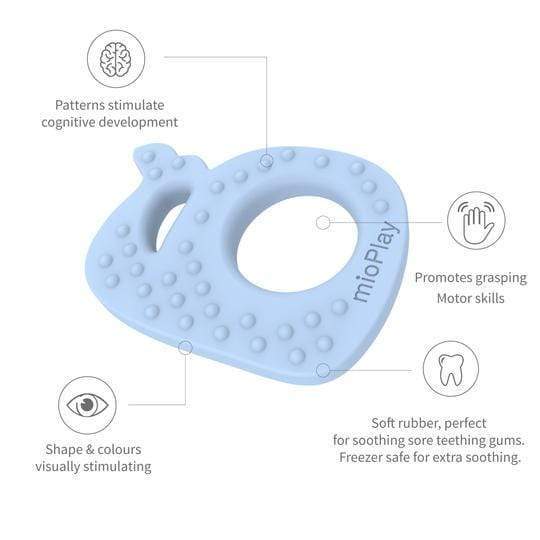 Crafted from 100% non-toxic, premium food-grade silicone, thr MioPlay Wally Whale teether is not only safe but also a perfect tool for your baby’s sensory development. Its soft silicone texture is gentle on sore gums, providing soothing relief during the teething phase. Specifically designed to stimulate your baby’s senses, it encourages exploration through touch and taste, promoting hand-eye coordination and fine motor skills. A great companion for easing discomfort and supporting early developmental milestones.