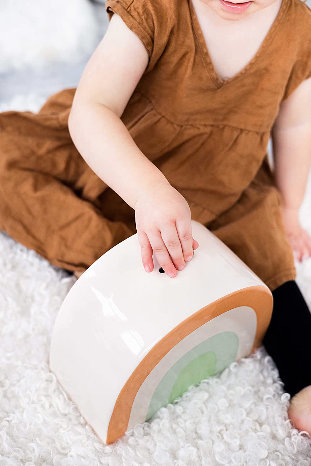 Create special memories with your little one while teaching your baby girl or baby boy all about the importance of saving money using this adorable ceramic money bank by Pearhead!