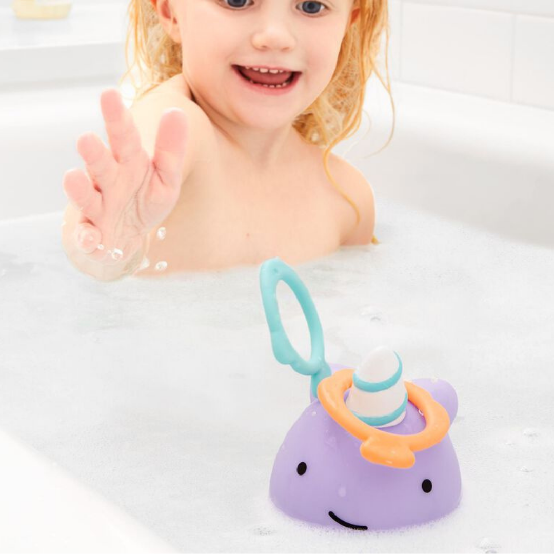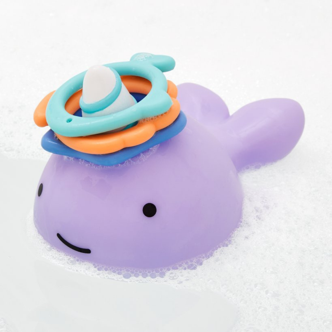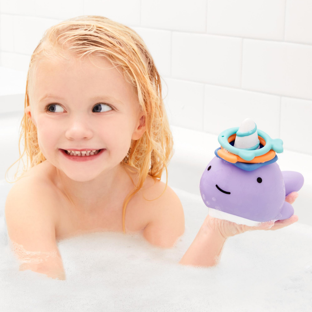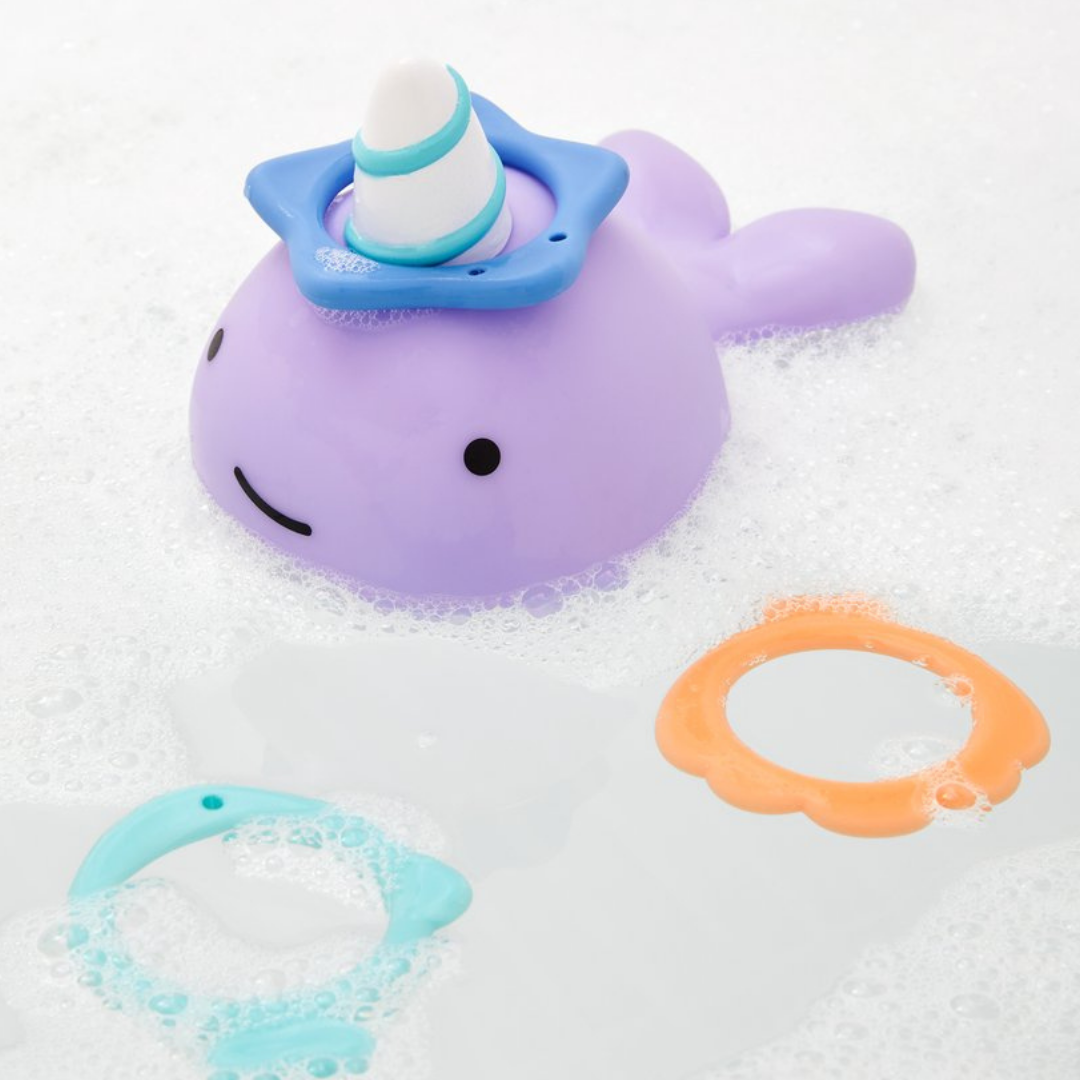 This bath time friend is ready to ring it on! Skip Hop's Narwhal Ring Toss whale is all set for a game of catch with your little one. Just toss the rings onto its lil horn and score a splash of bathtime fun!