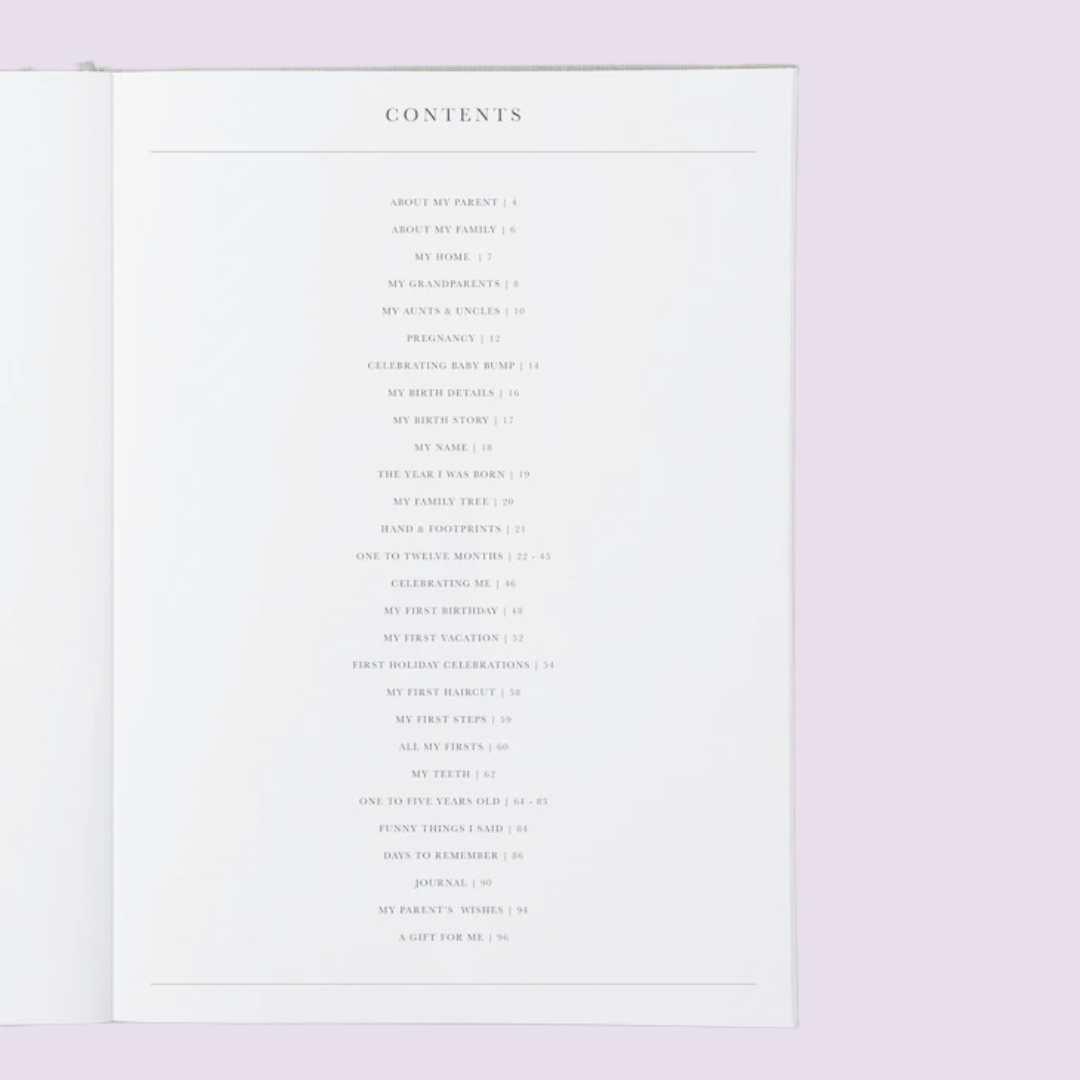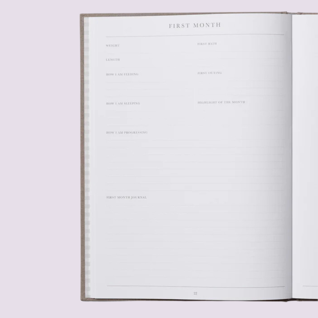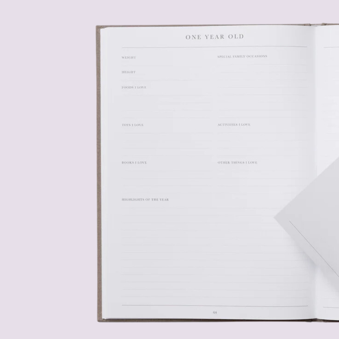 Capture every special milestone fromfirst steps, first words, first tooth, first birthday, and so much more with this beautifully linen-bound baby journal from Write to Me. It offers plenty of room to document memories, photos, and moments from pre-birth through to your child’s fifth year. Thoughtfully designed to be gender-neutral, it's perfect for parents and grandparents alike. This guided journal is sure to become a beloved keepsake, preserving the precious memories of this treasured time.